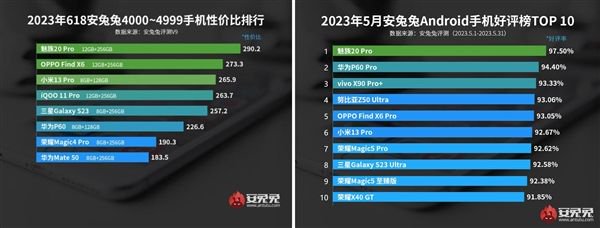 在刚刚曩昔的5月,魅族20 PRO生效拿下了4000-4999元档位手机性价比排名的冠军,并同期成为了当月破钞者好评率最高的一款手机。